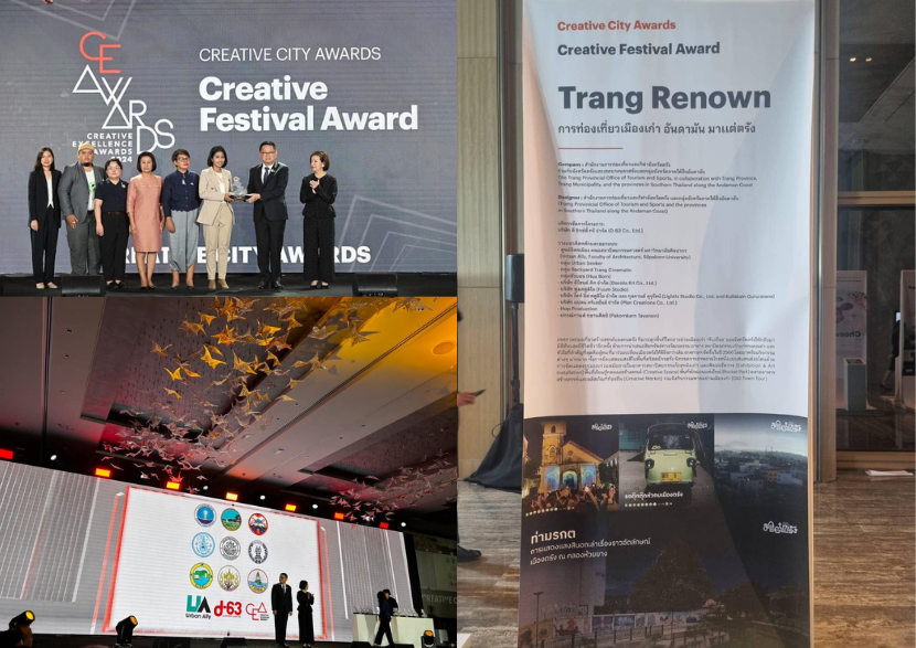 ผลงานของ d-63 ในบทบาท Contractor & Organizer ของงาน “มาแต่ตรัง Trang Renown” ที่ได้รับการยอมรับผ่านรางวัล Creative Festival Award 2024 จากสำนักงานส่งเสริมเศรษฐกิจสร้างสรรค์ (องค์การมหาชน) หรือ CEA ที่ประกาศรางวัล เพื่อเชิดชูบุคคล ชุมชน ธุรกิจ และหน่วยงานทั้งภาครัฐและเอกชน ที่นำความคิดสร้างสรรค์มาใช้ในการสร้างคุณค่าและผลกระทบเชิงบวกต่อเศรษฐกิจ สังคม และสิ่งแวดล้อม เพื่อร่วมขับเคลื่อนอนาคตของประเทศไทย